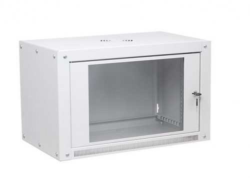 C096052GWTWOF-RU / Шкаф 19" настенный 9U 600x520mm серый, дверь стекло, без вентилятора (W&T)
